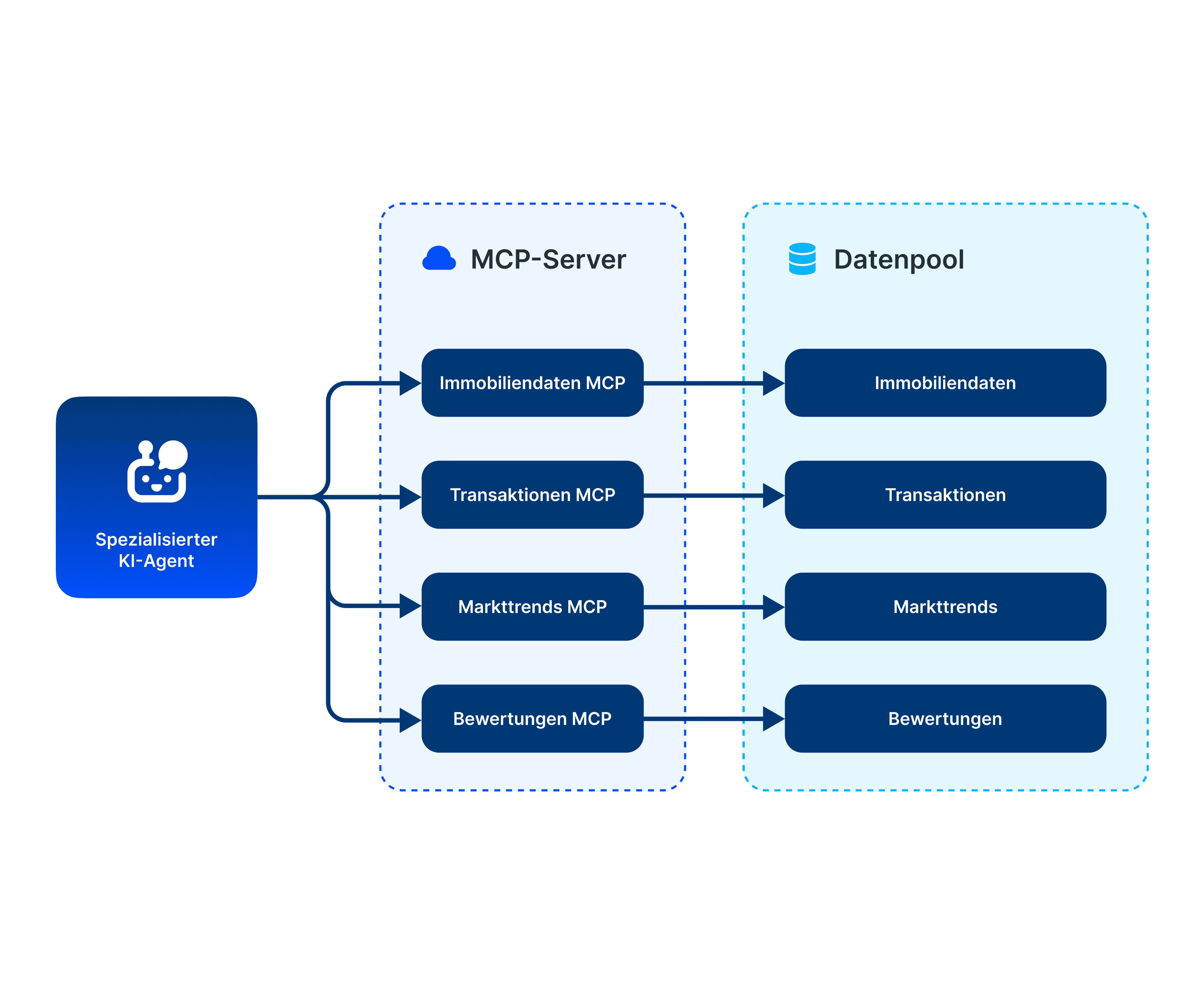 Unsere MCPs liefern kontrollierte, faktenbasierte Daten. KI-Agenten erfinden keine Antworten mehr zu Marktbedingungen, Bewertungen oder Vergleichsobjekten – sie fragen diese einfach ab.