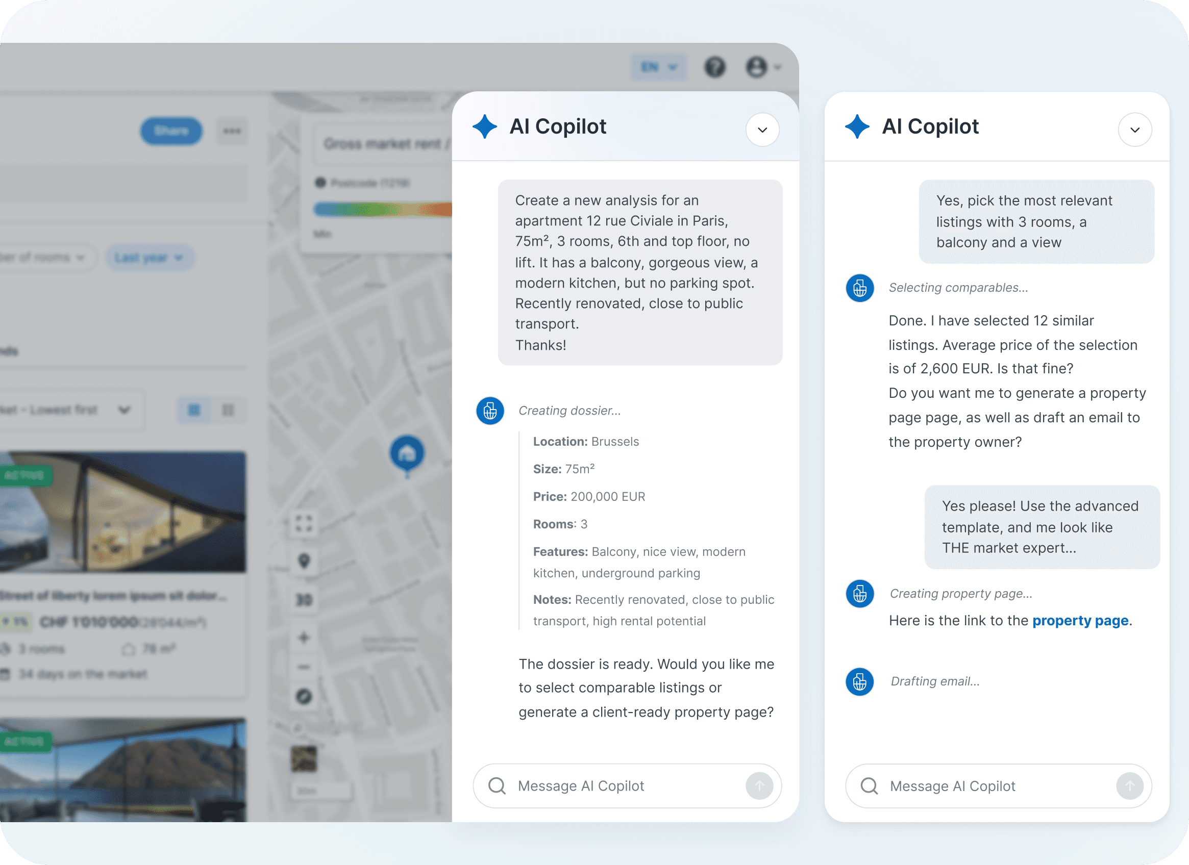 Les agents peuvent facilement accéder aux données sur les annonces, comparables, valorisations et dynamiques de marché, sans nécessiter d’intégrations personnalisées.
