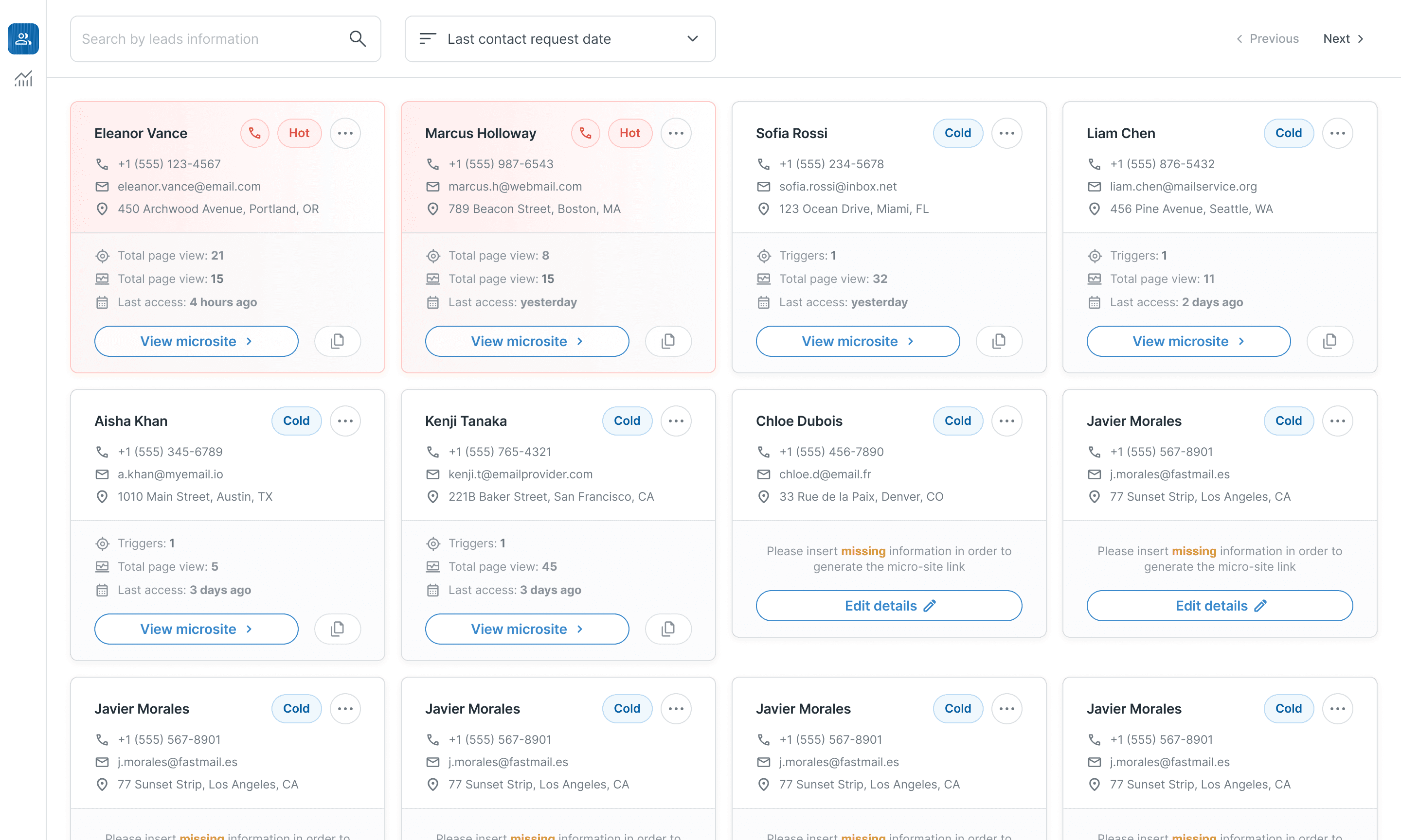 24時間365日、見込み客からのアクセスに即座に対応し、マイクロサイトを送信。また情報収集、アポイント設定も自動。これにより有望な見込み客をお待たせすることなく、商談機会を確実に捉え、担当者はAIによって準備万端の状態が整えられているため、戦略的な営業活動に専念できます。限られたリソースでも、営業効率の最大化が可能です。