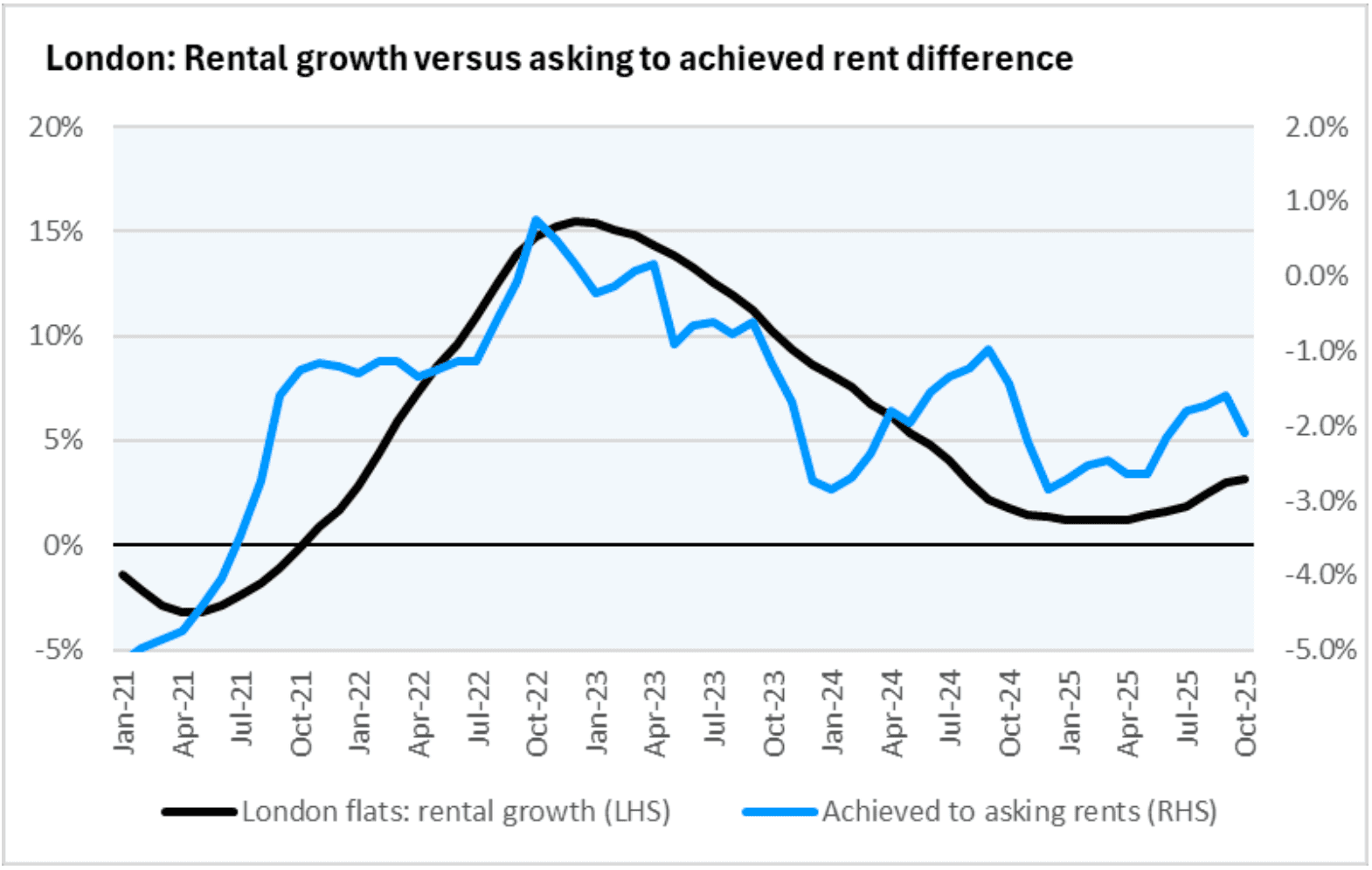 Related to this, the data also shows that the proportion of properties achieving above-asking rent has varied throughout the cycle. Again, looking at London data, this has averaged one in five tenancies above asking since 2021. When market demand is running strong this has increased to one in three tenancies above asking. With bidding wars prohibited, the likely outcome is that asking rents may rise slightly as landlords adjust to a single transparent price point.